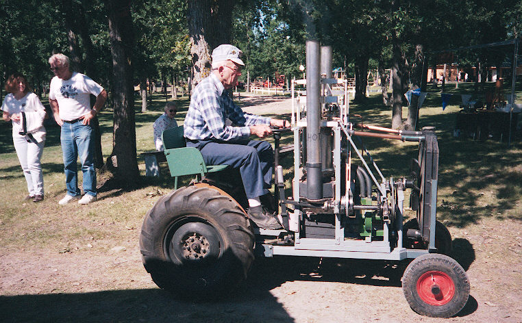 | Here is the original Robinson, made in Maidstone, England. This baby ran all day long every day! Smooth as silk, quiet as a mouse walking across an elephants butt with tennis shoes on (as my daddy used to say ;-) ) The tractor in the foreground is Jim Tangeman's. In addition to this one, Jim brought one he could ride on! More on Jim a bit later. | |