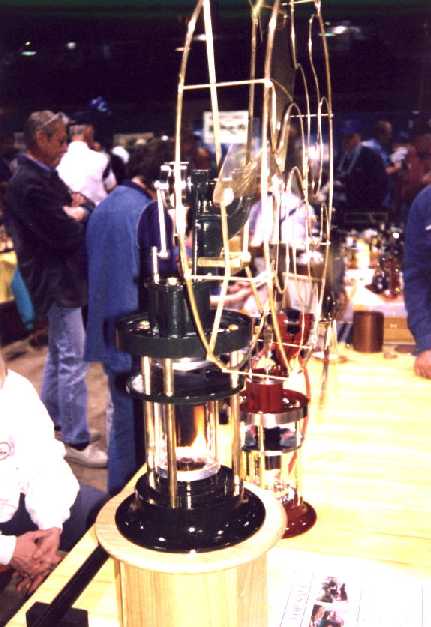 We did manage to take a few photos, which you will see below. Because of the emphasis of these pages, we show only external combustion engines, mainly Stirlings. this is not to give short shrift to the many other models there, but simply because of our direction. In general, the quality of workmanship at this exhibit is outstanding. The fit and finish of almost all the models was superb. If you have not had the opportunity to see this or the PRIME exhibit, by all means make the time. You will be delighted.