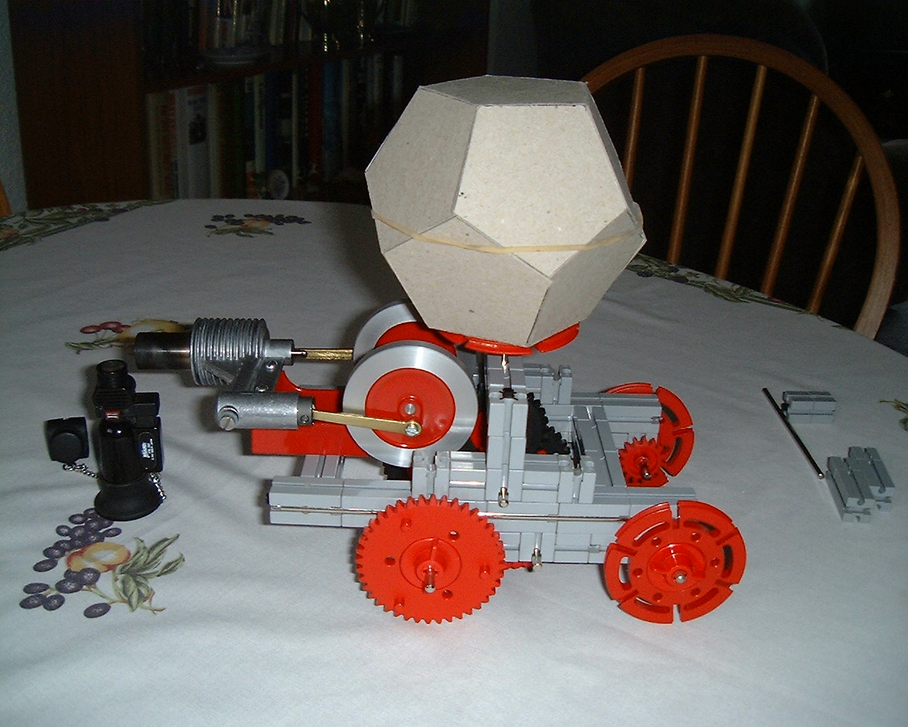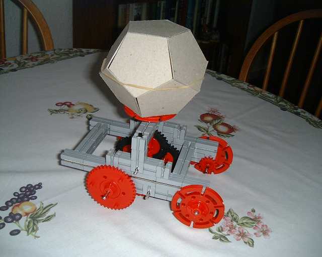 Our correspondent not only assembled the combination listed in the title of this page, he did it with Meccano assemblies, so I suppose we could add that to the name and have a "Meccano built, Stirling Powered, South Pointing, Pop-up Dodecahedron"!